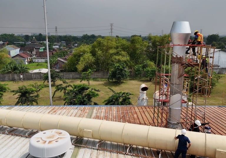 kami mengerjakan proyek pengecatan konstruksi pada sektor industri,